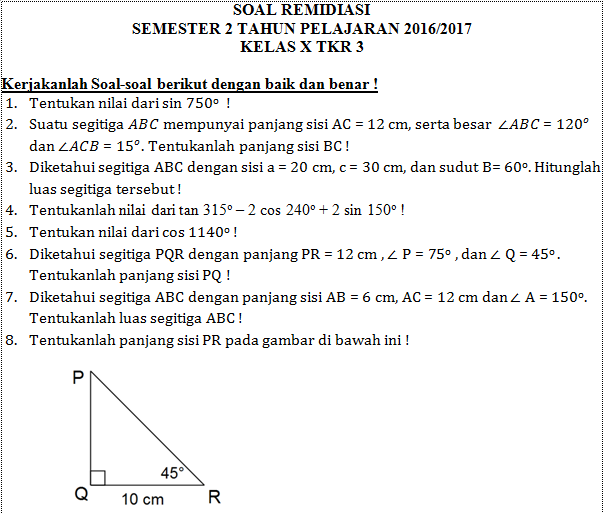 Bagi siswa yang remidi silahkan mengerjakan soal berikut :